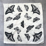 These bandanas are made from 100% soft cotton fabric and handprinted from original lino cut designs by Kelly Hartman, a Montana native who runs Wild Joy Creative. Each bandana has a raw edge and measures 22"x22". Due to the handmade nature of this piece the print may appear vintage with slight fading in areas, this is purposeful.
