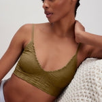 A favorite seamless fabrication gets a textured twist with this longline bralette from Free People intimates. Longline bralette style, pull-on design made from soft, stretchy seamless fabric. Unlined with v-neckline, triangle cups, lettuce-edge trim and skinny straps. Perfect for under oversized sweaters and more.