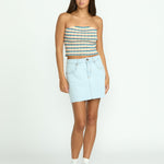 Magikal waves of pointelle striping bring a playful and feminine energy to this cropped cotton tube top. Crafted from soft, yarn-dyed pointelle knit, it features an elastic interior band for a secure, stay-put fit. Finished with subtle metal branding, this whimsical piece pairs effortlessly with your favorite high-rise denim or flowy skirts.