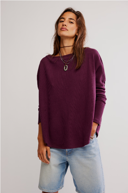 Slouchy, waffle knit perfection from Free People, this super-soft oversized thermal provides endless layering options!