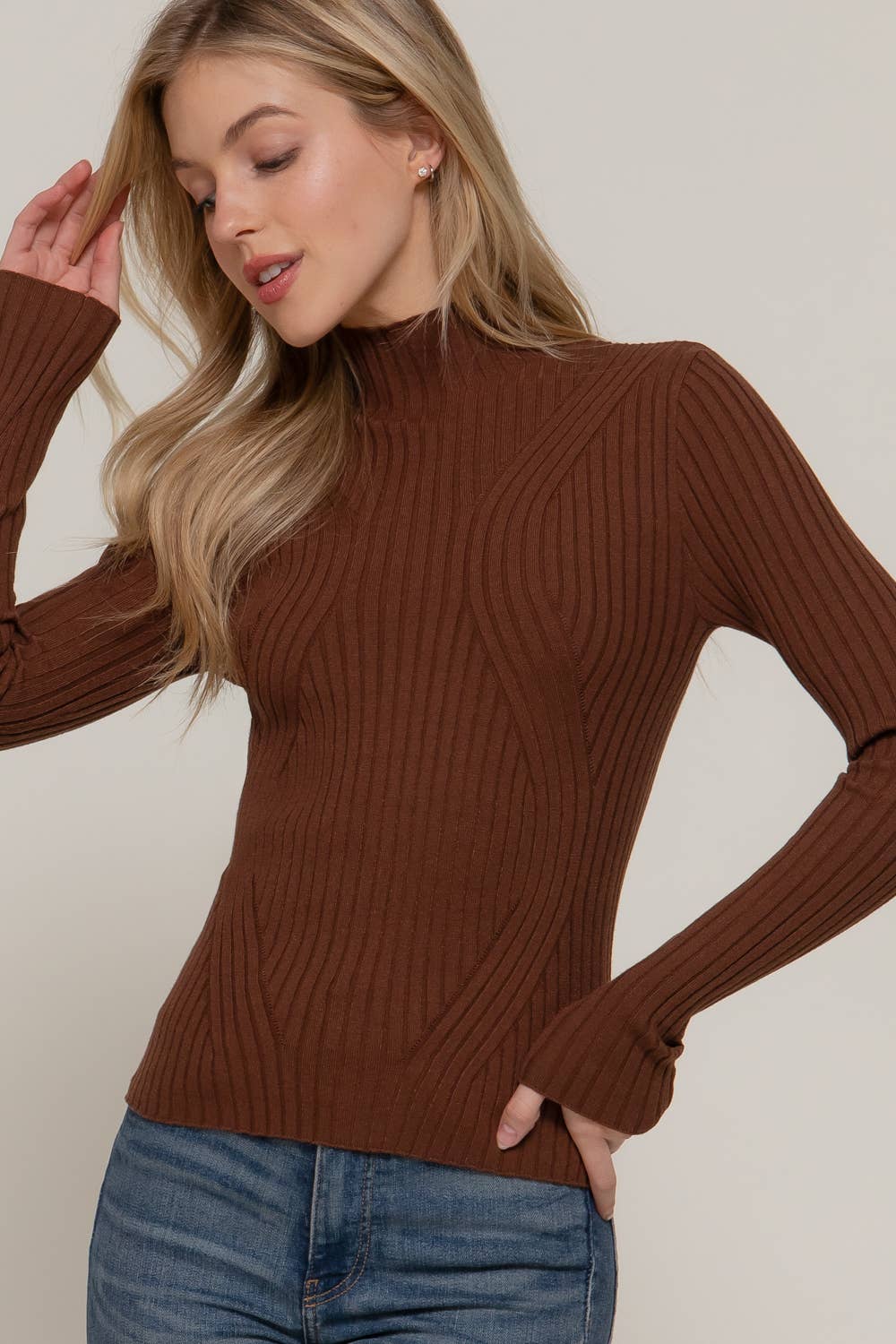 A cozy essential for layering season after season, this long-sleeve fitted sweater features a high mock neck and luxuriously soft fabric that hugs the body just right. Crafted from a blend of viscose, polyester, and nylon, it’s warm, lightweight, and perfect for fall and winter styling.