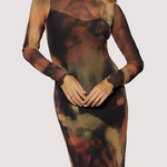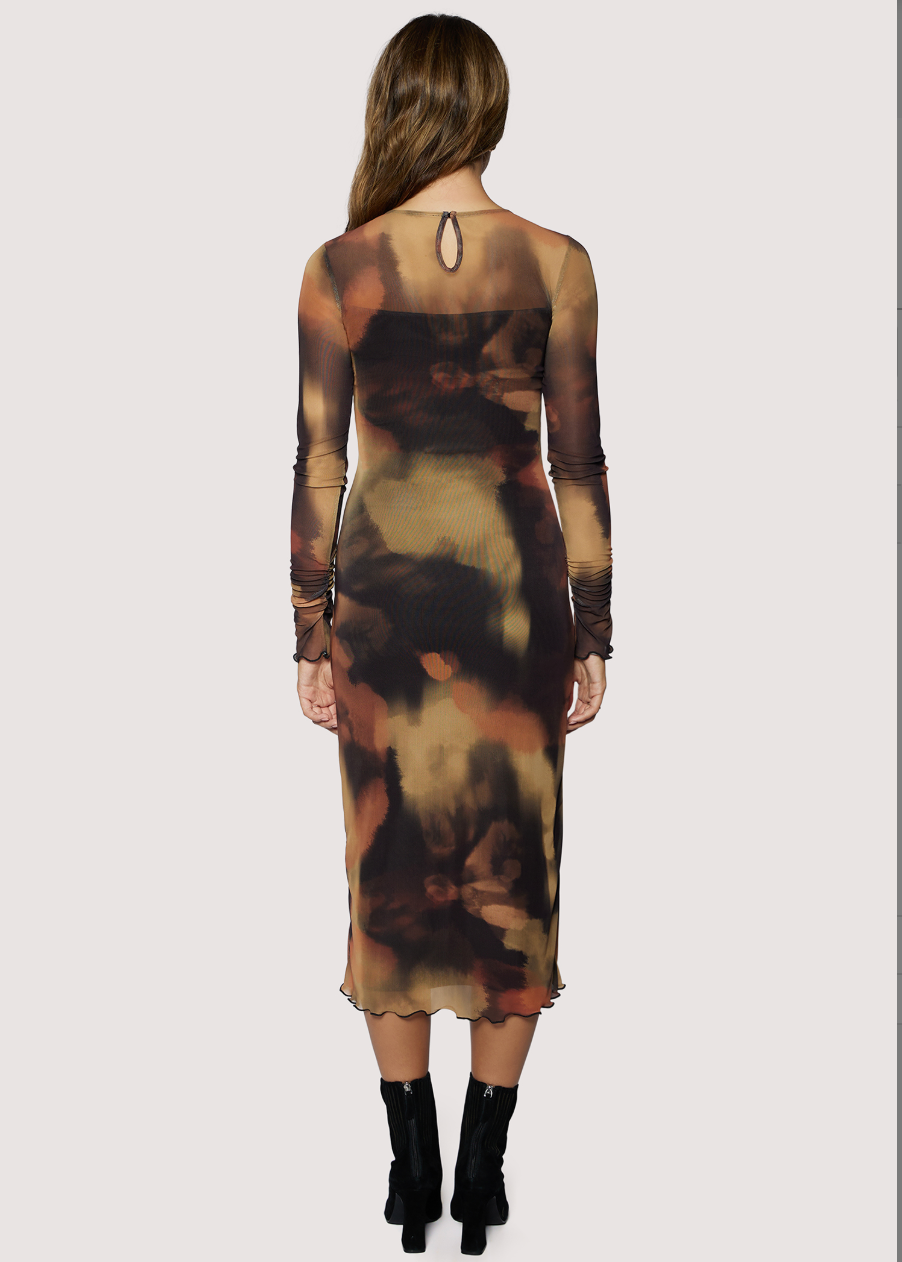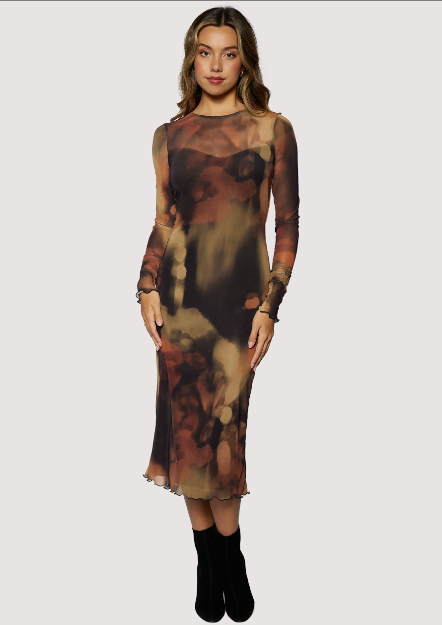 Luminous Shadow Midi Dress - Brown Multi
