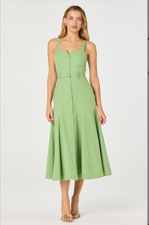 McKinley Button-Front Midi Dress- Avocado