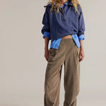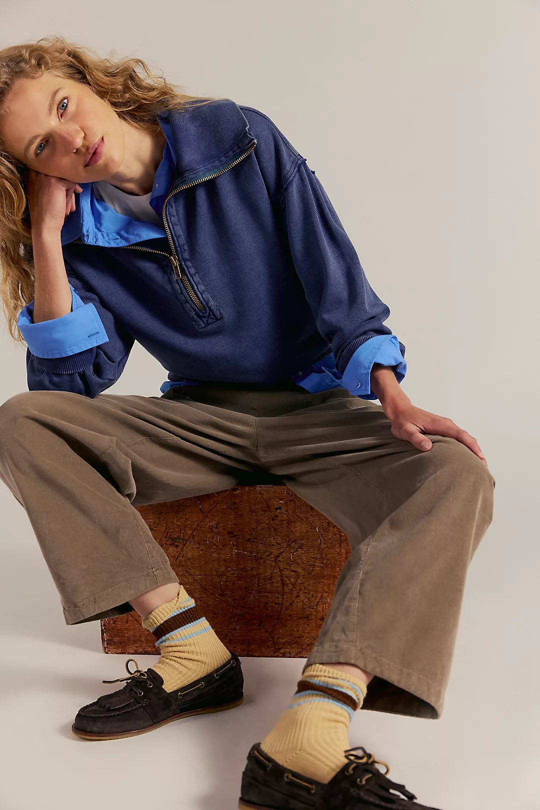 Comfy and flattering, these mid-rise cords have tucked pleating and dropped pouch pockets for some elevated styling. Pull on style and elastic waistband. Perfect fall color that will become a staple in your wardrobe.