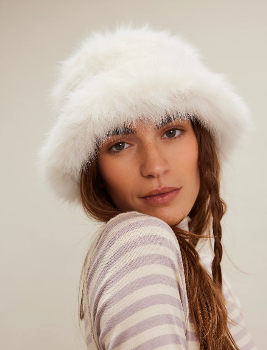 Add a touch of fabulous to every cold-weather look in this faux fur bucket hat. Satin lining ensures your hair stays put underneath, and a not-too-big not-too-small brim let you stay warm + see where you're going.