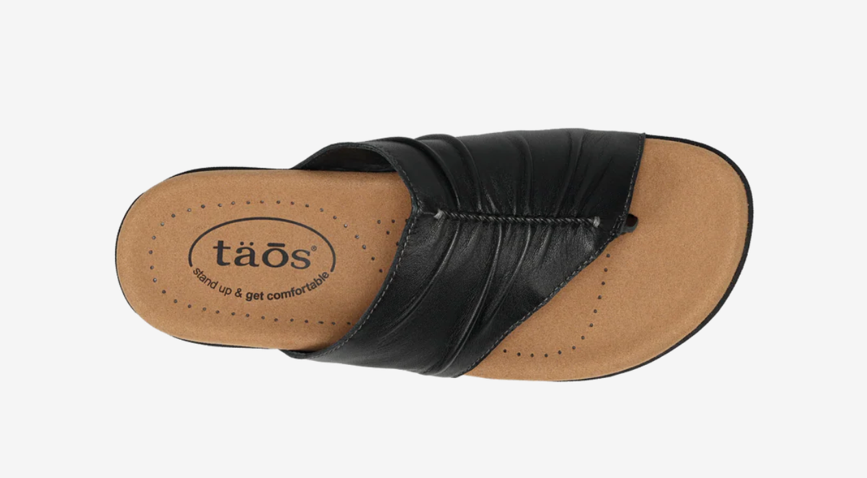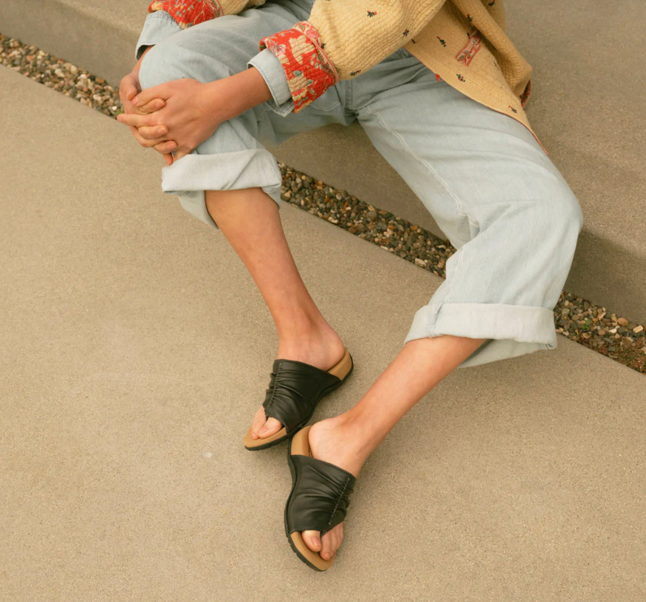 A Moka Favorite! Treat your feet to the ultimate comfort with Taos's Gift 2 Sandal, designed to provide unmatched support and style. Crafted with sumptuous leather and featuring hand-stitched scrunch pleating, these sandals offer the perfect balance of durability and elegance. Ideal for those seeking comfortable sandals with more coverage, the Gift 2 is the perfect choice for long days or casual outings.