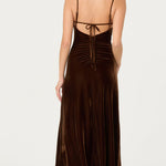 Sumptious chocolate velvet, in an easy-to-wear flattering a-line shape? Yes, Please! A fabulous square neckline, tie back with adjustable straps, and ruched back zip combine to make this velvet dress by ASTR the label a showstopper. Wear it to formal events, or dress it down and wear it with boots and flannel for a seasonal look.