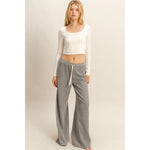 Waffled Knit Pants with Contrasting Ties - Gray