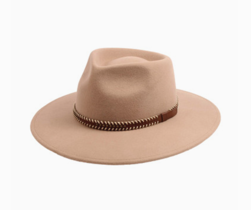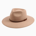 Western Outback fedora 100% wool felt Hat with stitched leather band - Tan