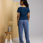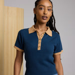 Zuri Vintage Style Polo Sweater - Sapphire/Latte